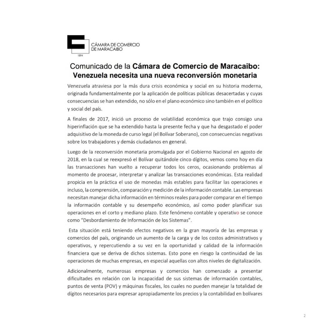 #ComunicadoOficial de la @CamaraMaracaibo 𝗩𝗲𝗻𝗲𝘇𝘂𝗲𝗹𝗮 𝗻𝗲𝗰𝗲𝘀𝗶𝘁𝗮 𝘂𝗻𝗮 𝗻𝘂𝗲𝘃𝗮 𝗿𝗲𝗰𝗼𝗻𝘃𝗲𝗿𝘀𝗶𝗼́𝗻 𝗺𝗼𝗻𝗲𝘁𝗮𝗿𝗶𝗮
