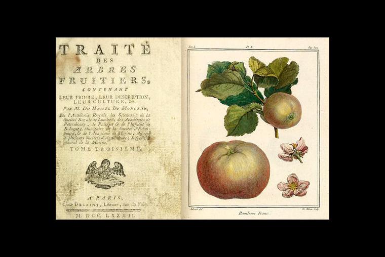 Escrito por Henri Louis Duhamel du Monceau alrededor de 1750, contiene las descripciones de 16 diferentes especies de árboles de frutas. Duhamel fue una figura relevante como ingeniero, botánico y químico durante el siglo XVIII. En 2006 alcanzó un precio de 4.5 millones de dólares.