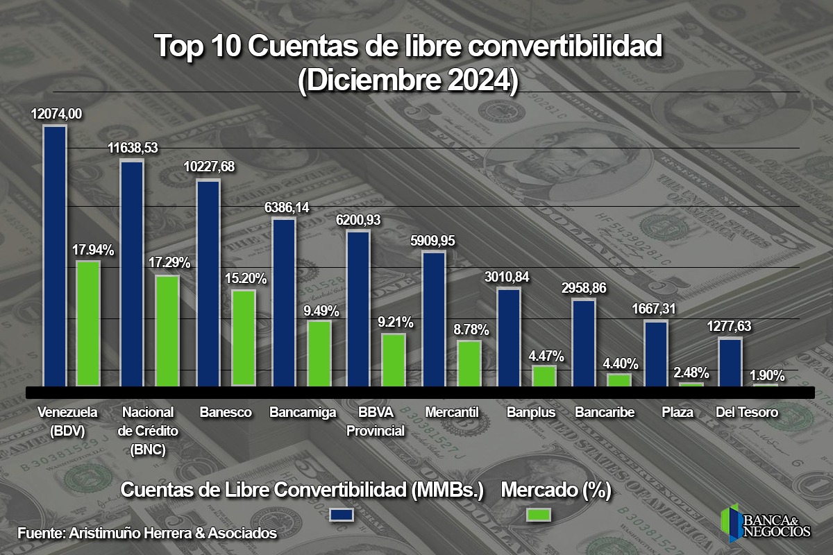 Estas tres instituciones concentraron 50,43% del mercado de cuentas de libre convertibilidad, al cierre de 2024.